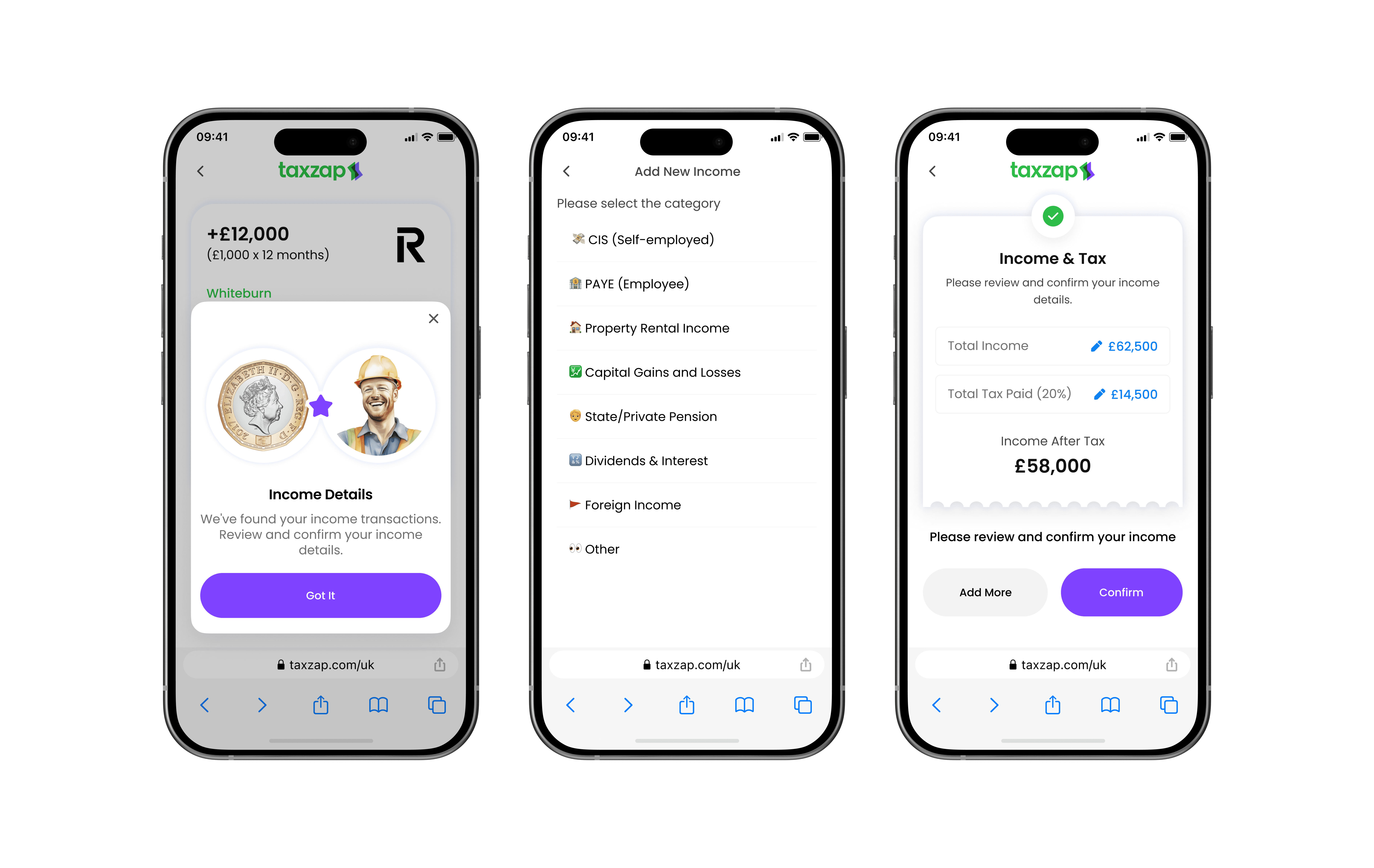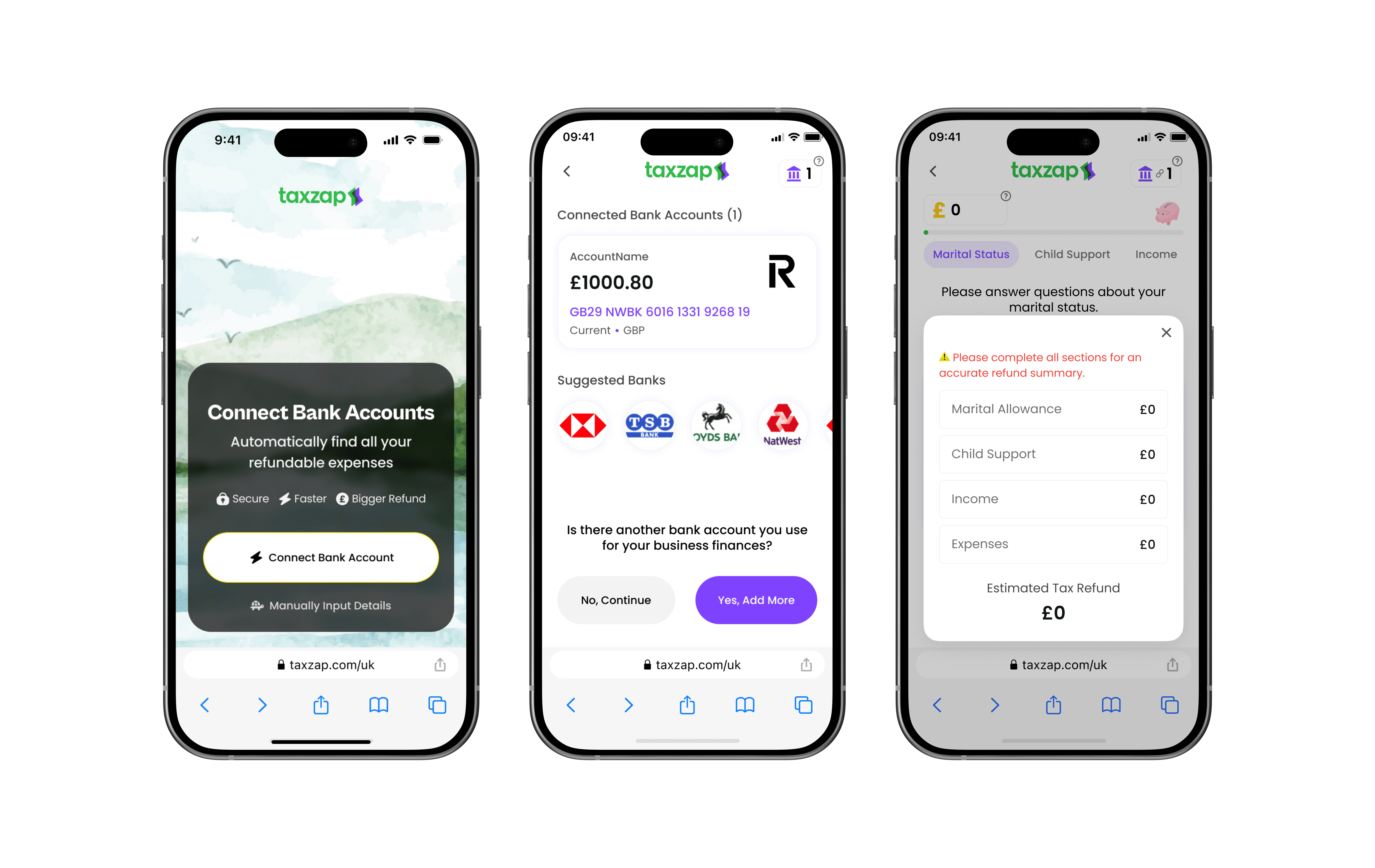 TaxZap is a Progressive Web App that simplifies the process of preparing and submitting tax filings online currently in Ireland and the UK.