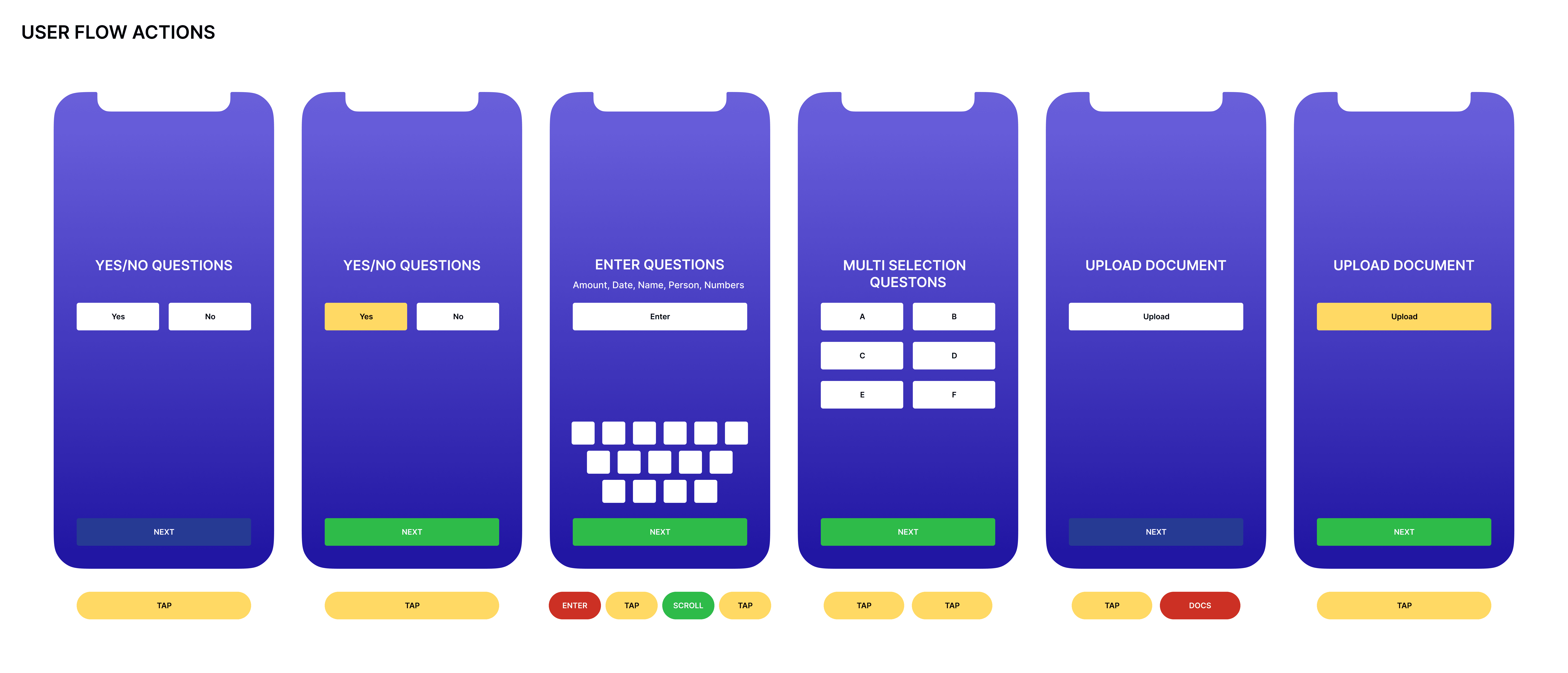 I compiled a list of all questionnaire types and mapped out the actions required to complete each question.