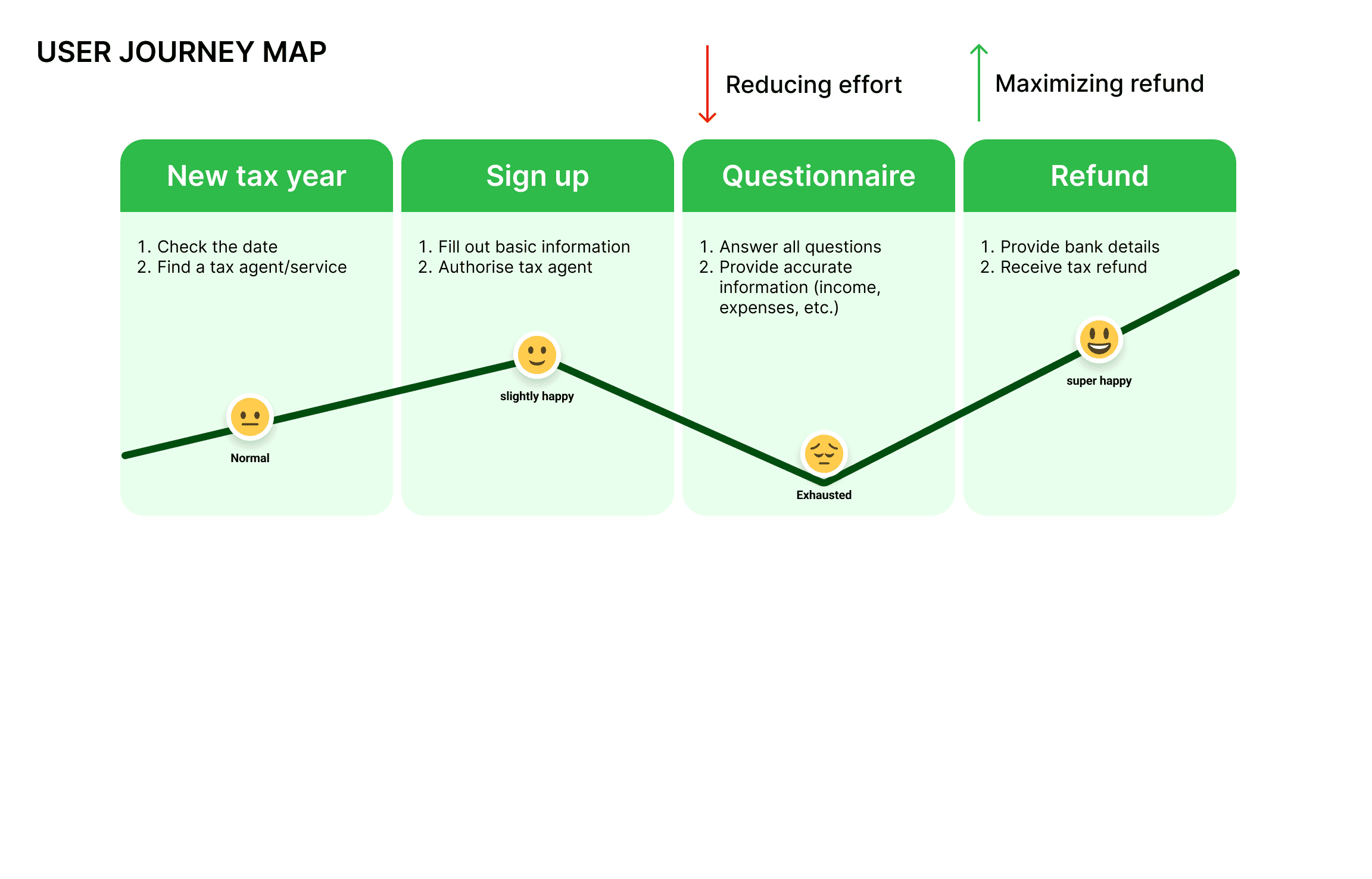 I redesigned the questionnaire flow by incorporating gamification and gesture-based elements to enhance user engagement and motivation. These interactive features guide users through the process, encouraging them to complete all the required tax details accurately.